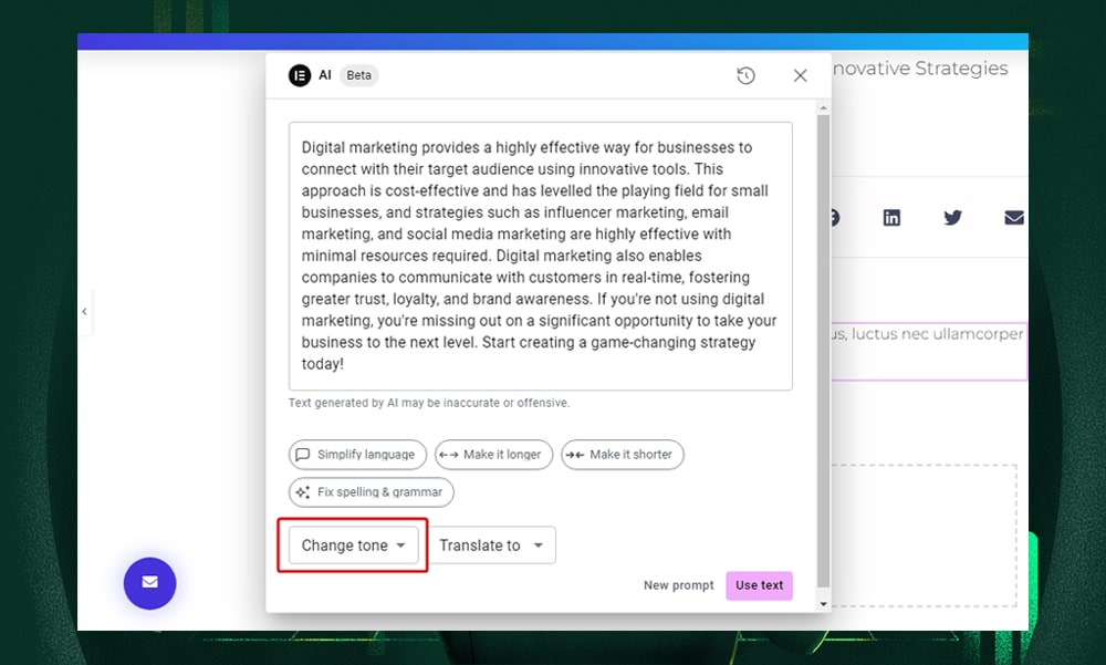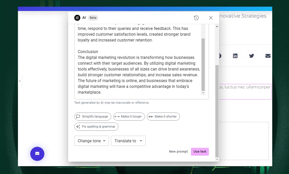 Writing requires a lot of time and creativity, whether it’s a top-notch headline or blog content. With Elementor AI, you can say goodbye to endless brainstorming sessions and writer’s block.