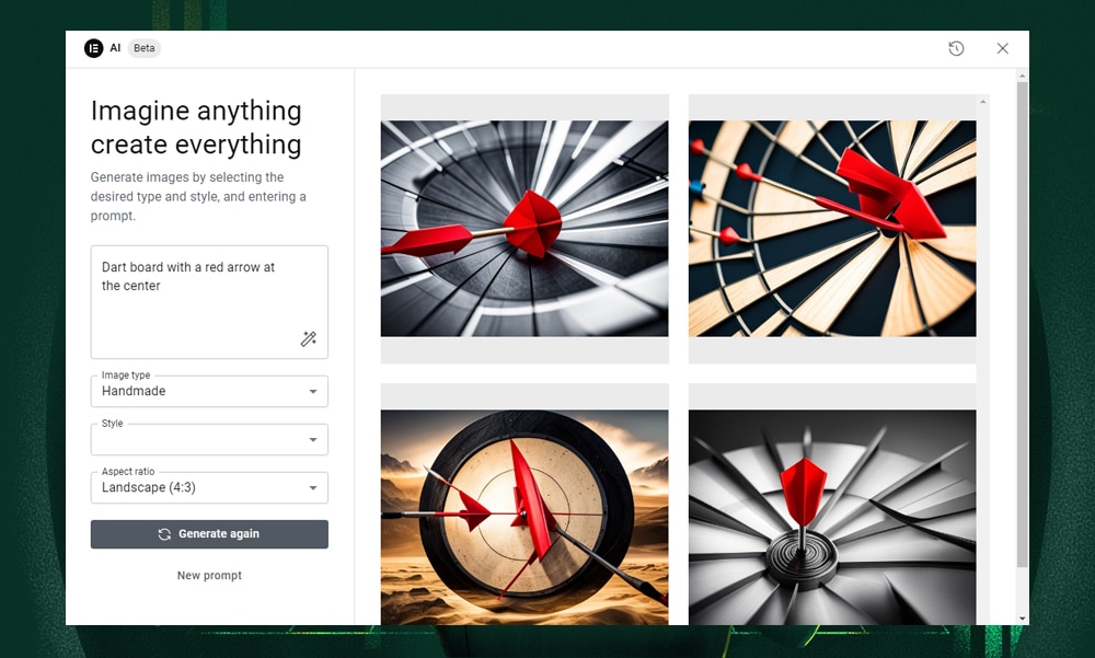 Elementor AI's image generation capabilities are quite versatile. For starters, it can generate new images directly in the editor. This means you don’t need to switch between third-party tools.
